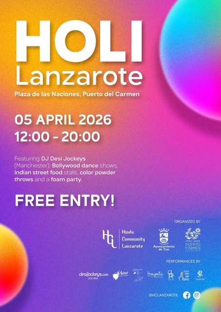 The very popular and fun festival «Holi Lanzarote» will this year be celebrated on the 5th April from midday until 20.00 at the Plaza de los Naciones in Los Pocillos, Puerto del Carmen..