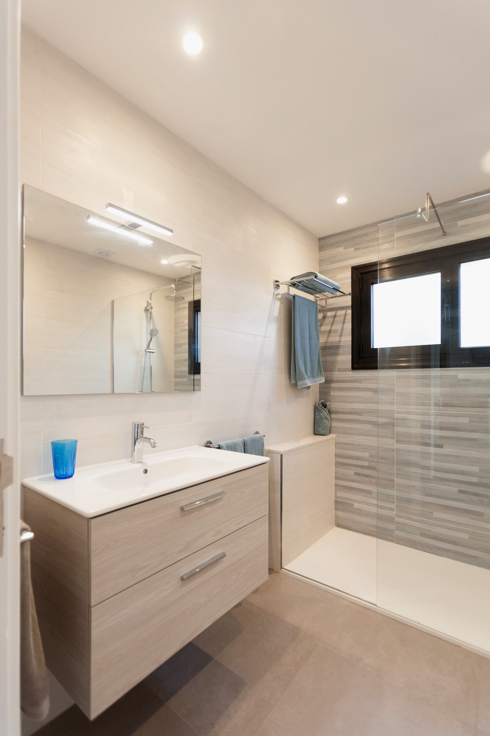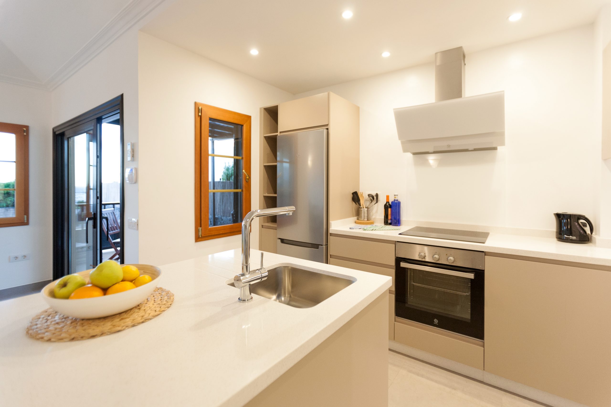 These three villas are very close to the ever more popular old town fishing harbour and yet still within a 10 minute walk from the main beach and its promenade full of shops and restaurants. The villas, all south facing and in a quiet cul-de-sac road, are very sheltered from the prevailing winds making them a real suntrap and ideal for sun worshippers. The accommodation is spacious with 3 large bedrooms, one with full en suite bathroom and a further bathroom for the 2 other bedrooms. The fully fitted kitchen is equipped with an oven, microwave, ceramic hob, fridge/freezer, electric kettle and toaster. There is a utility room with a washing machine, iron, ironing board and drying area. The villas are tastefully decorated and equipped to the highest standards with quality furniture and satellite TV. Complimentary Wi-Fi is also provided. The villa leads onto a large covered veranda furnished with stylish patio teak table and chairs and equipped with a built-in barbecue, making this a perfect spot for outside dining. The ample sun terrace with large private heated pool is well provided with sun loungers and umbrellas. Each villa has its own private car parking space with gate.