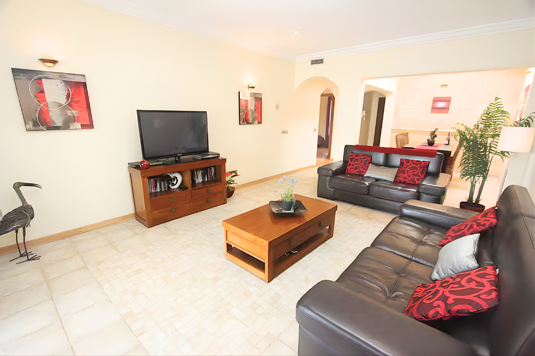 Comfortable living and dining area with flat screen TV. Internet TV.