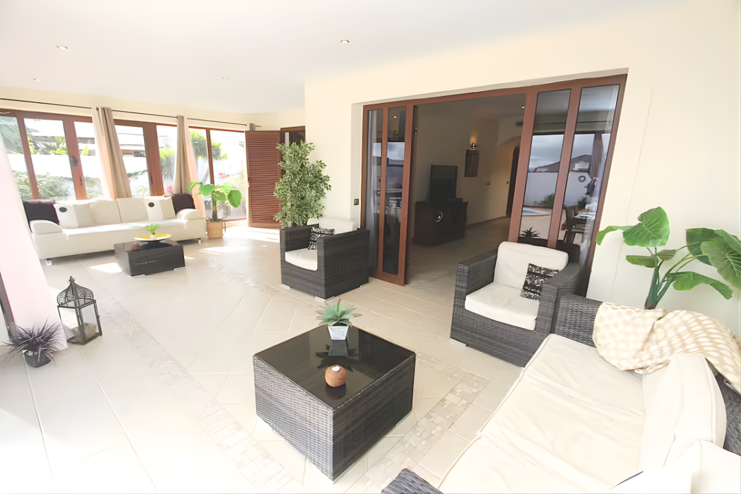 Playa Blanca is an extensive resort which stretches from the beautiful beaches of Papagayo at one end, to the Faro Lighthouse at the other end of the coastal promenade. There are also two water parks within the resort; Aqualava and Paradise Island Water Park. The villa is located in the Costa Papagayo which is a residential villa area within a 15-20 minute walk, or if you are not keen on walking, a 5 minute drive to the Playa Dorada beach in Playa Blanca where you will find a selection of bars, restaurants and a supermarket. Playa Blanca has a great selection of beaches bars and restaurants and a very quaint shopping center. There is also a marina, the national park of Papagayo beaches and a ferry port with a 40 minute service to the nearby island of Fuerteventura.