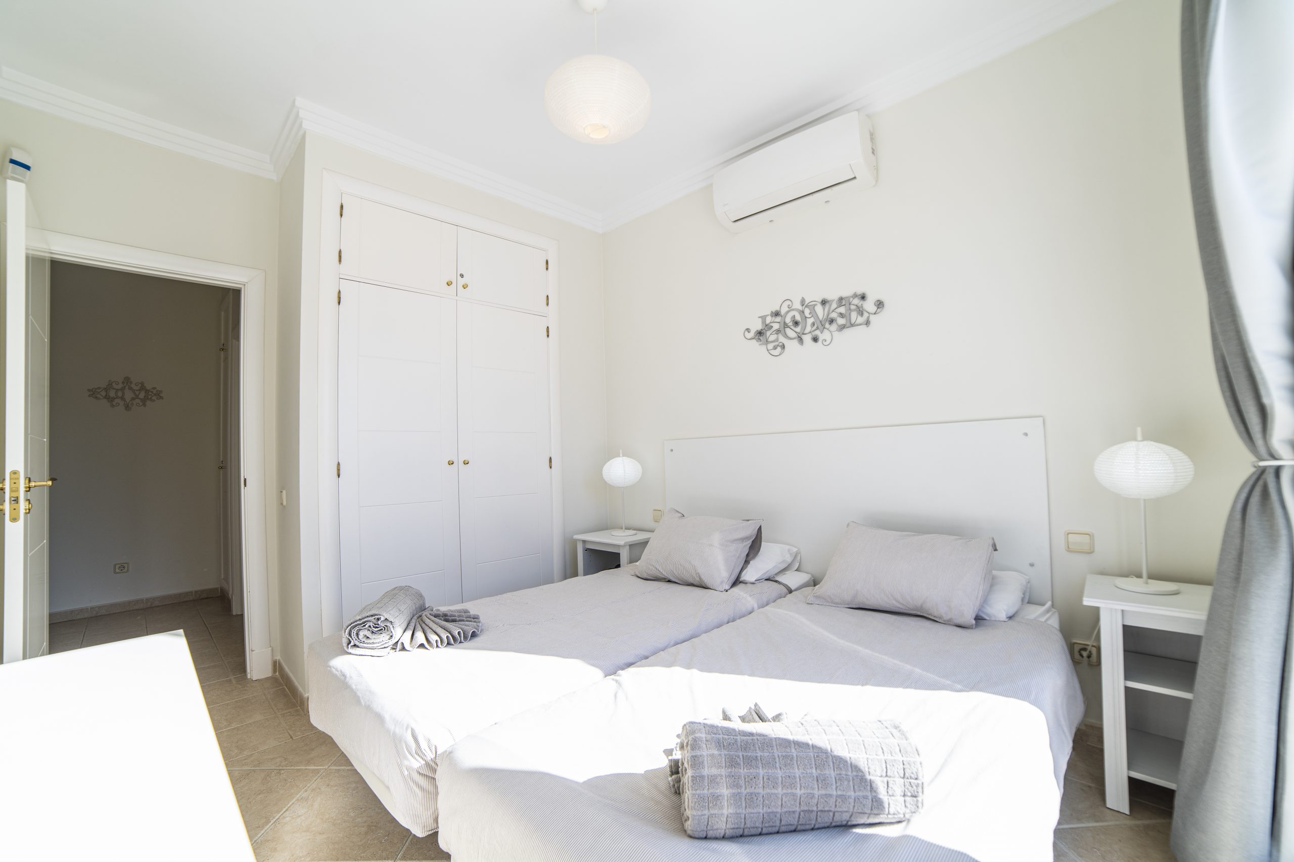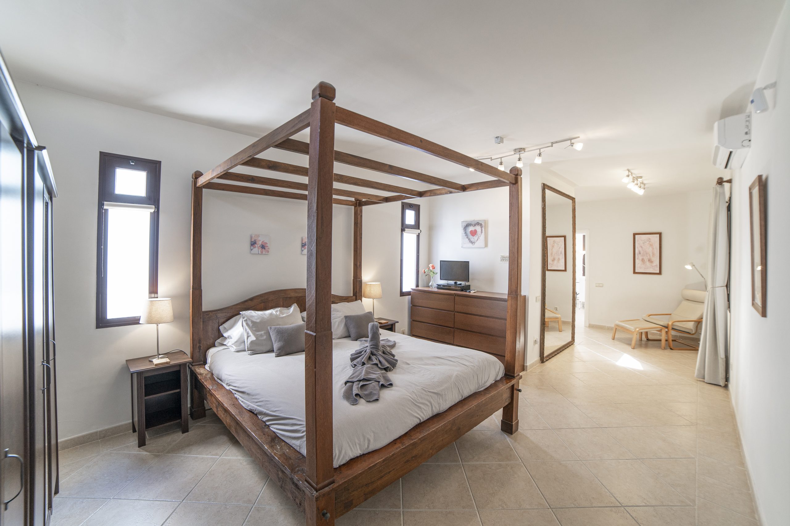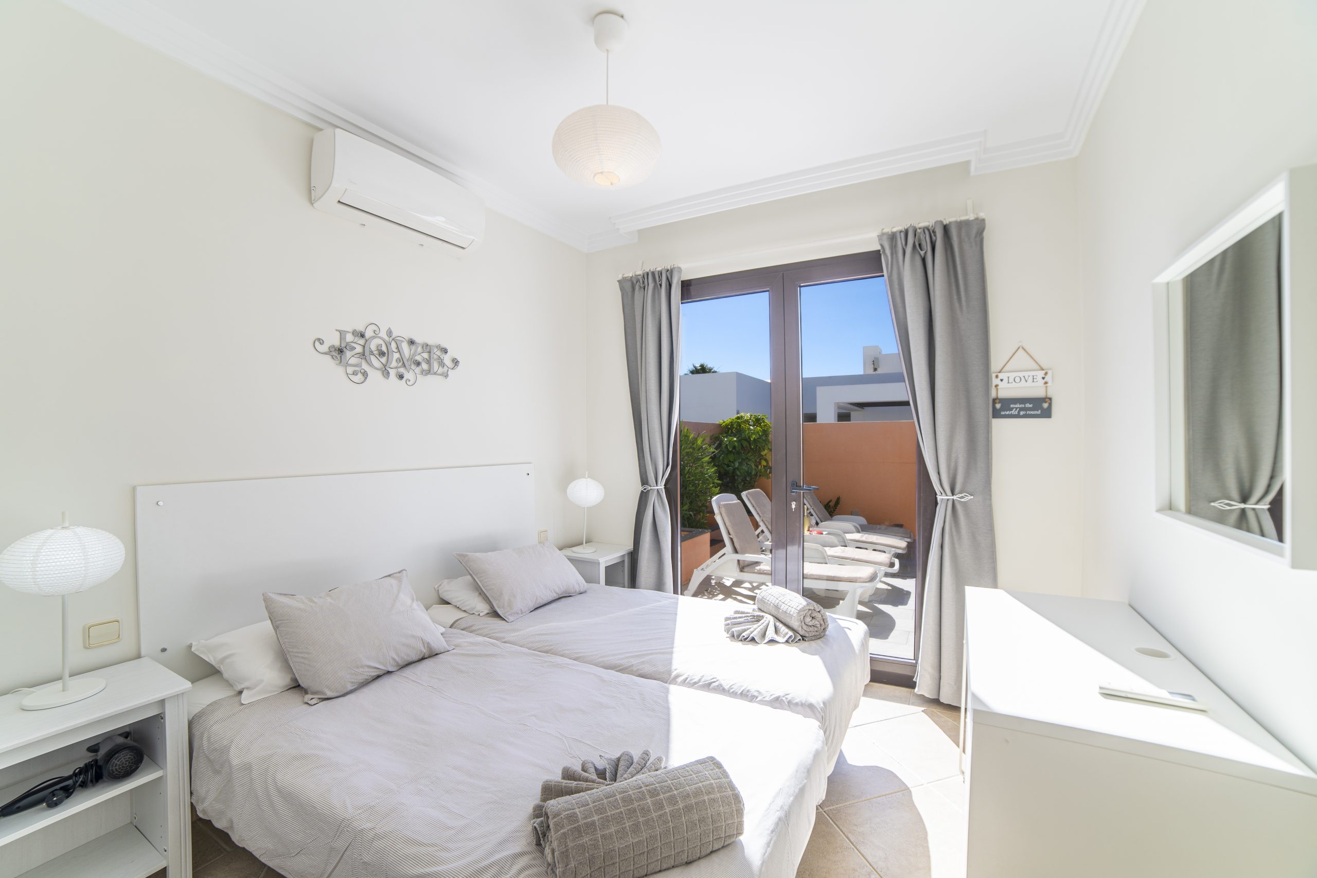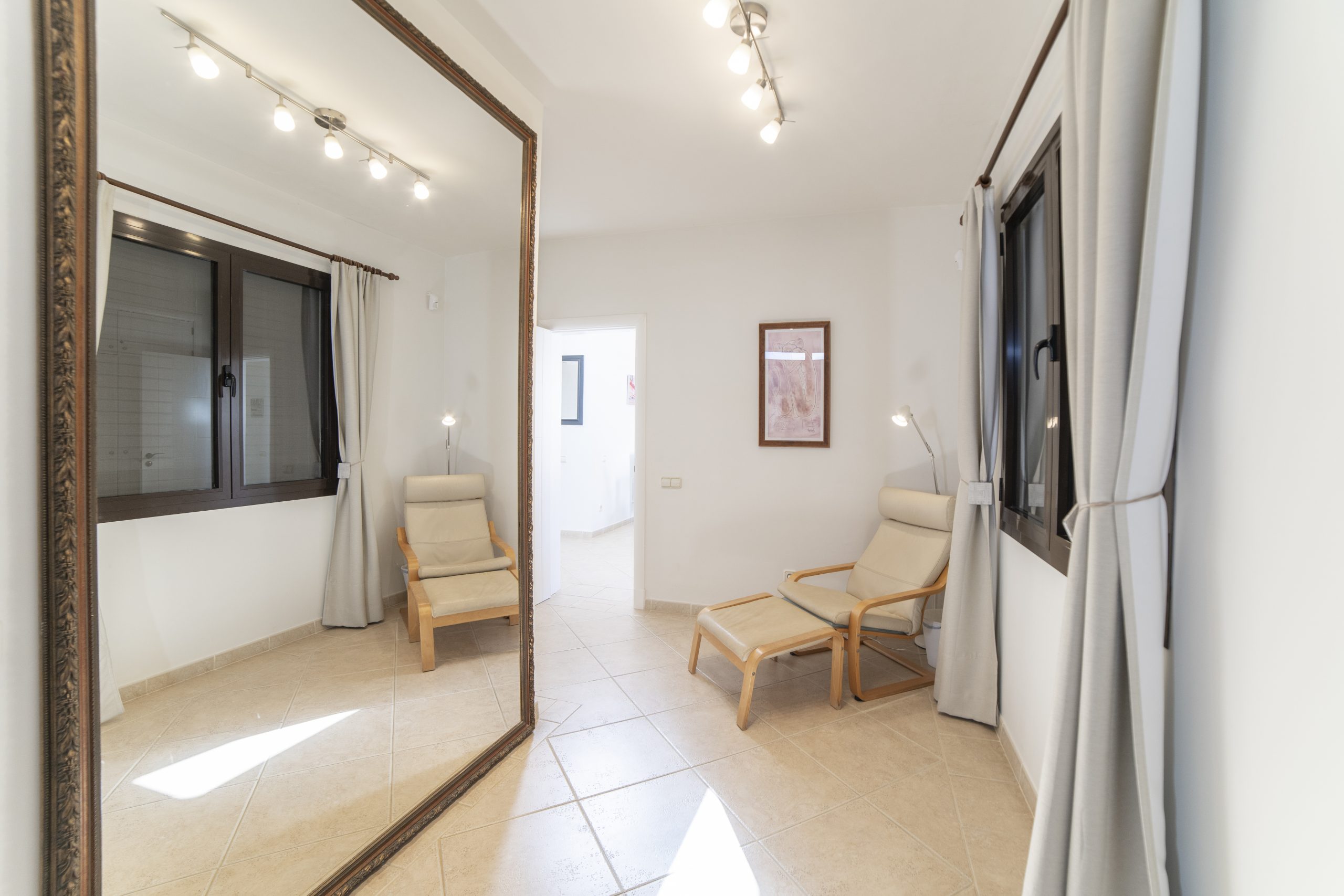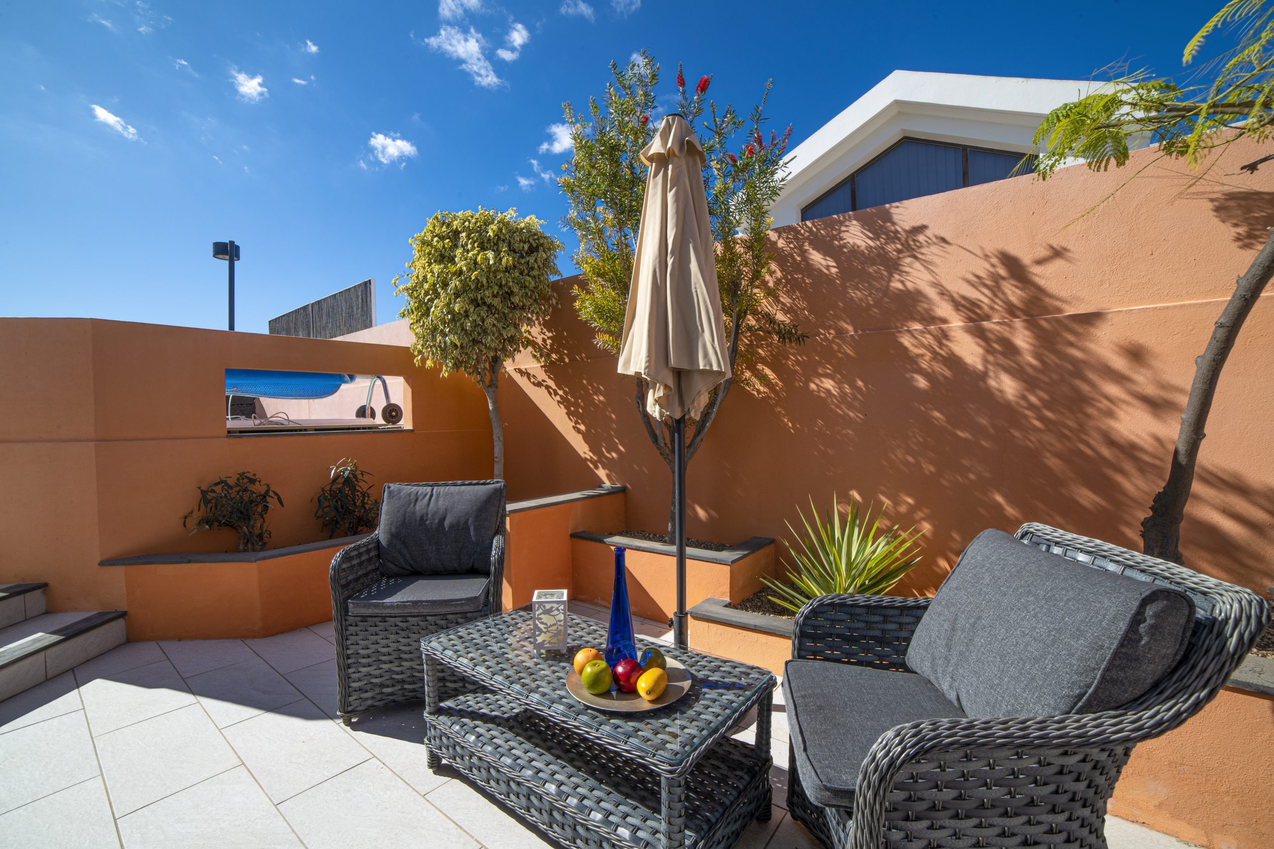 Modern and well furnished 2 bedroom villa in the Buganvilla area of Playa Blanca. This holiday rental has a unique resistance pool for keen swimmers, hot tub for relaxing, tennis/paddle court and pool table. The furnished outdoor areas are perfect for al fresco dining and soaking up the sun. There is 1 double bedroom with a four poster bed and a further bedroom with twin beds. A leisurely 25-minute walk from the beach and the heart of the seaside village. There, you can enjoy a variety of cafes and restaurants along the seafront promenade and in the elegant setting of Marina Rubicón. This bright and inviting villa features a fully equipped kitchen, 2 bedrooms, 2 bathrooms as well as absolute tranquility.The villa also as coin operated air conditioning & IPTV with UK channels