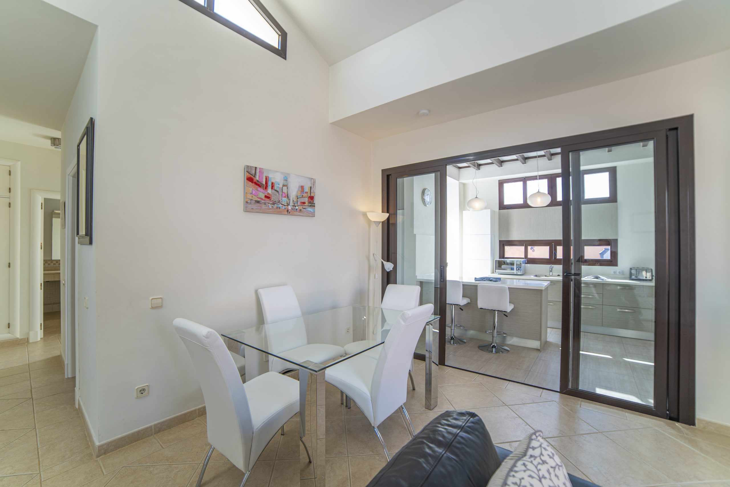 Comfortable and modern living and dining area with flat screen IPTV with UK chanels. Patio doors to sun terrace