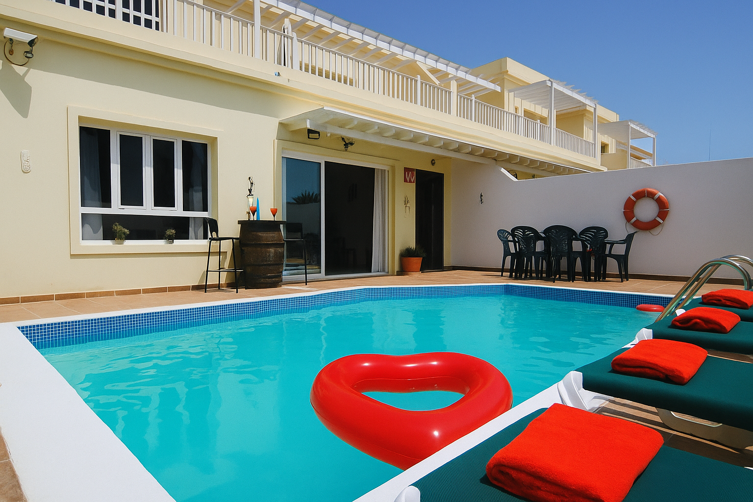 Had a lovely stay at this villa. Villa is very well equipped (also with floaties for the pool).